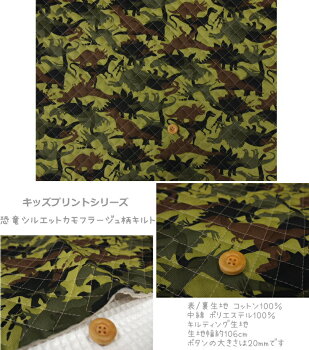 ●キルティング生地<<キッズプリントシリーズ>>/恐竜シルエットカモフラージュ柄キルト生地/キルティング生地/男の子/女の子/入園入学/レッスンバッグ/シューズバッグ/巾着袋/きょうりゅう/ダイナソー/恐竜迷彩柄/N21